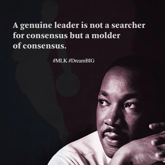 A Genuine Leader Is Not A Searcher For Consensus – I submit that leadership means setting in place processes or advisors to make sure you hear things people think you don’t want to hear, or that they don’t want you to hear. It may mean changing . (Strength to Love, 1963) 15. “A Genuine Leader Is Not A Searcher For Consensus but a molder of consensus.” (The Domestic Impact of the War in Vietnam, 1967) 16. “If you can’t fly then run, if you .