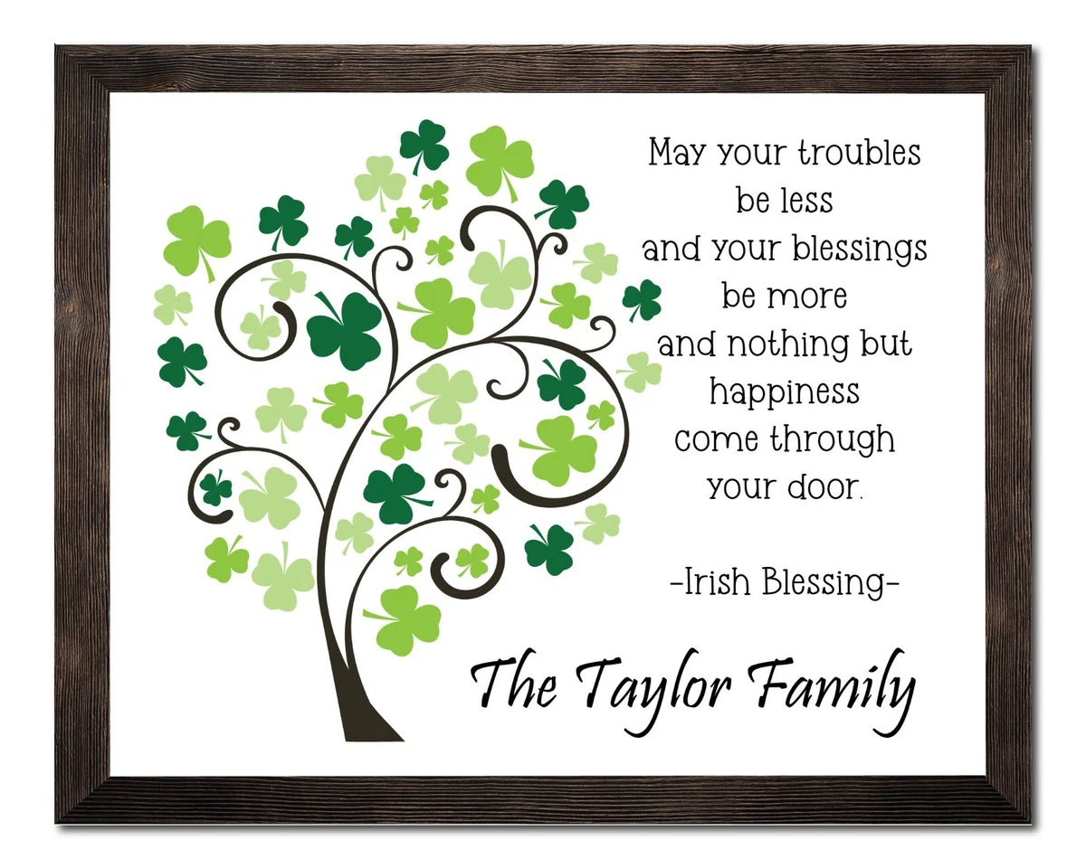 St Patrick’s Day Tree Family Name Personalized Irish Blessing Sign